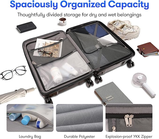 - Large Suitcase: Expertly designed in a compact yet spacious form to cater to all your travel essentials with precision. Trust in premium zippers for a worry-free packing and unpacking experience, while interior divider panels maintain impeccable organization within your luggage. Soft handles on the top and sides of the luggage help you lift the suitcase easily without hurting your fingers