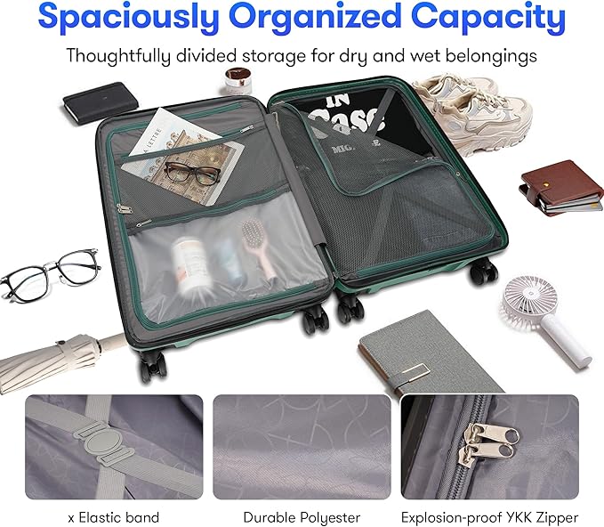 - Large Suitcase: Expertly designed in a compact yet spacious form to cater to all your travel essentials with precision. Trust in premium zippers for a worry-free packing and unpacking experience, while interior divider panels maintain impeccable organization within your luggage. Soft handles on the top and sides of the luggage help you lift the suitcase easily without hurting your fingers
