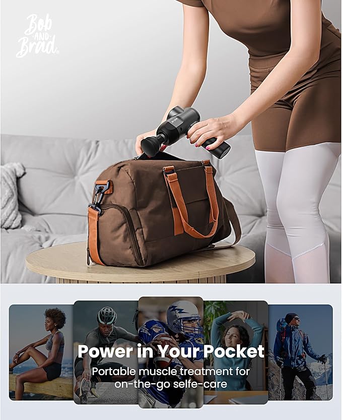 - Lightweight & Portable Design, Perfect Gifts - Bob and Brad C2 Max massage gun weighs just 1.5lbs/0.68KG, making it easy to carry anywhere and fit into any gym bag. Enhance portability with the included case. The ergonomic silicone handle ensures a comfortable grip, allowing you to carry the muscle massage gun with you and use it whenever needed.