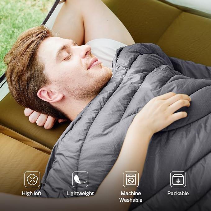 Camping Blanket, Packable, Lightweight Camp Quilt with Zipper, Multifunctional Outdoor Sleeping Blanket for Backpacking, Travel, Stadium, Beach