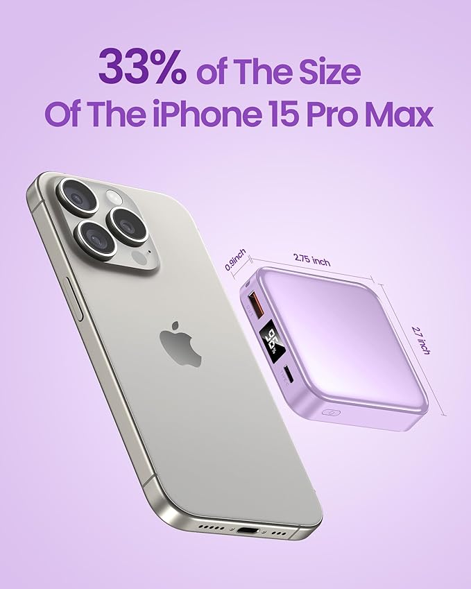 10000mAh Small Power Bank,Fast Charge Mini Portable Charger, USB C Input/Output with External Battery Pack, Smart LED Display,Suitable for iPhone, Samsung, iPad and Tablets.