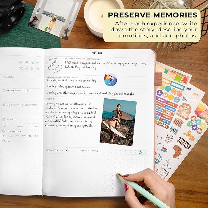 - CREATE MEMORIES THAT WILL LAST A LIFETIME: A unique feature of this bucket book is its 2 detailed “Before” and “After” pages. The “Before” page will help you plan your adventure in detail. The “After” page will help you preserve every precious memory.