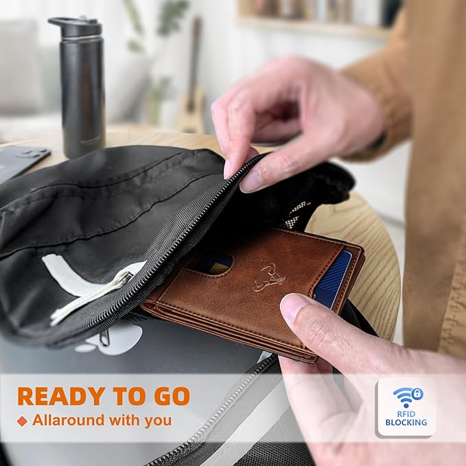 - COMPACT DESIGN--Enjoy effortless portability with our wallet's sleek dimensions. At just 4.5x3.2 inches,it slips effortlessly into front or back pockets for easy carry;