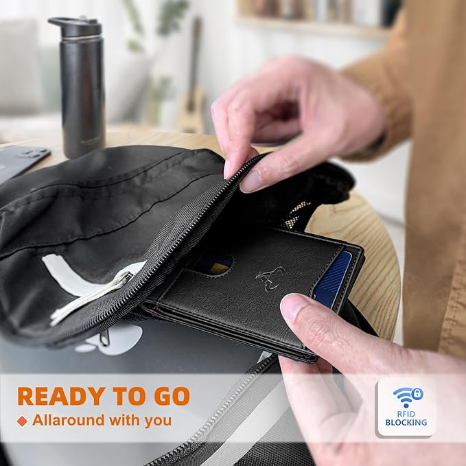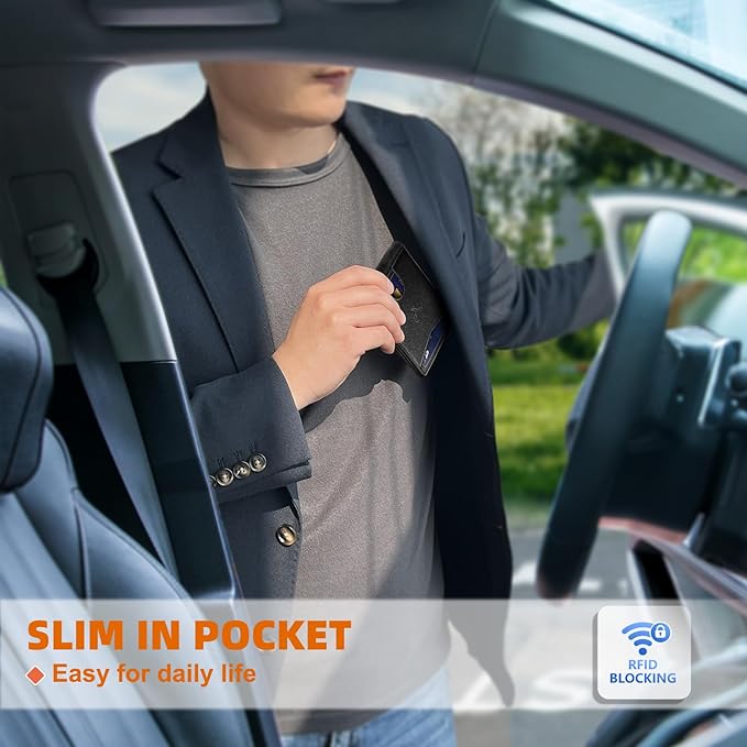 - COMPACT DESIGN--Enjoy effortless portability with our wallet's sleek dimensions. At just 4.5x3.2 inches,it slips effortlessly into front or back pockets for easy carry;