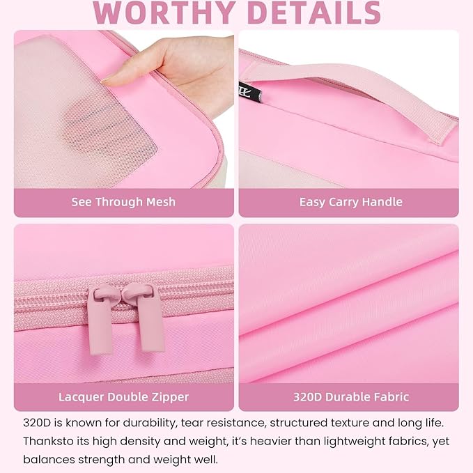 - ORGANISED&DURABLE:Super Durable 320D Fabric and Considerate Designed Construction Ensures Storing Your Clothes Neatly in Luggage without Adding Extra Weight.Premium Sturdy&Smooth Double Way Zipper with Extended Cord Ensure Fast&Easy Opening and Closing of the Packing Cubes.