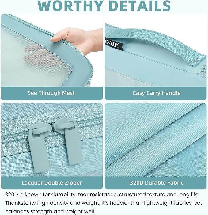 - ORGANISED&DURABLE:Super Durable 320D Fabric and Considerate Designed Construction Ensures Storing Your Clothes Neatly in Luggage without Adding Extra Weight.Premium Sturdy&Smooth Double Way Zipper with Extended Cord Ensure Fast&Easy Opening and Closing of the Packing Cubes.