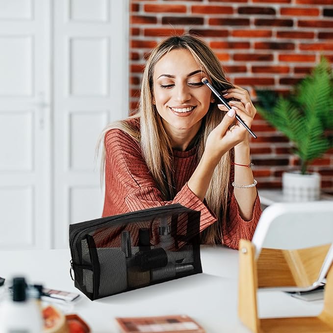 • 【Practical Mesh Bag】: The travel makeup bag is designed to be transparent, that you can see the inside items directly, saving you time for finding things. Smooth top zipper, easy to open and close, will give you a good use experience.
