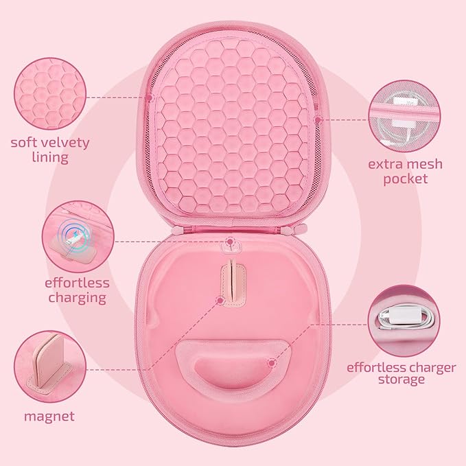 AirPod Max Case with Sleep and Charging Support, AirPods Max Accessory Compatible with Apple AirPods Max Wireless Over-Ear Headphones, Travel Portable Airpod Max Case(Pink)
