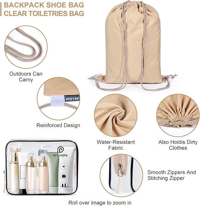 • 【Product Design Details 】This suitcase organizer bag set uses a double zip design to save space and keep everything organized. The additional airline compliant toiletries bag makes it secure and visible. The backpack bag used as a dirty laundry bag or shoe bag is suitable for short trips or outdoor activities