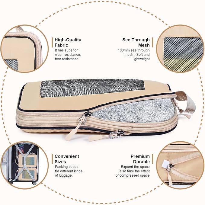• 【Suitable For Occasion】Travel Compressible packing cubes Ideal for family vacations, business trips, outdoor camping, and daily storage. Our brand believes in Let you pack and travel easily.These packing cubes allow for quick and easy retrieval of specific items