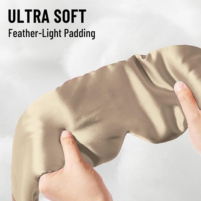- ELEGANT AND FASHIONABLE DESIGN: Not only a practical sleep mask, but also a fashionable accessory that enhances the quality of life. The minimalist yet stylish exterior design complements various home styles perfectly. Whether resting at home or traveling long distances, this silk eye mask for sleeping can become your elegant companion with you