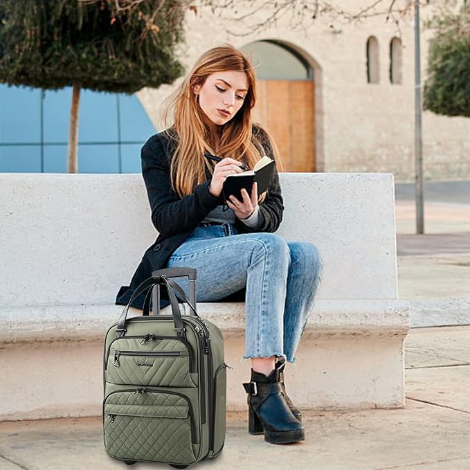 KROSER Carry On Underseat Multi-functional, 16-inch Underseater Lightweight Overnight Suitcase for Women, Olive