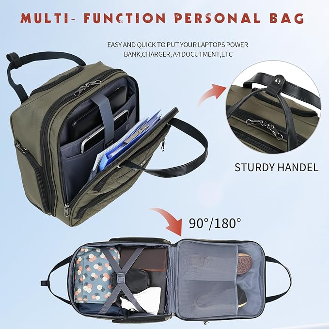 - HASSLE-FREE TRAVEL: Top with sturdy carry handle for easy lifting. Back with a smart Sleeve allows the bag to be placed over the handle of most upright luggage pieces.