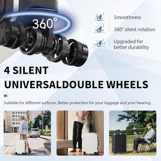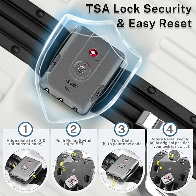 - 【TSA Lock Protects Luggage Security】Featuring a sturdy TSA lock, the suitcase enhances the security of your luggage during travel. (TSA locks do not come with keys). Its zipperless design protects belongings from unauthorized access.The zipperless design allows you to easily open the suitcase to find what you need in noisy environments without the need to go around the case a whole circle like a zip suitcase for you to open it.