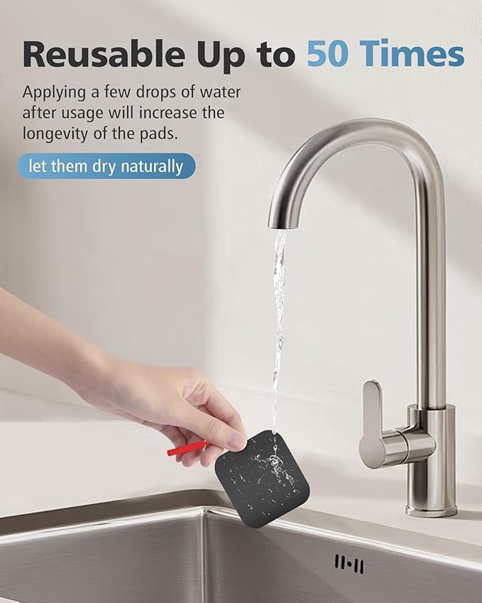 - Reusable Tens Unit Electrode Pads: Our tens pads are washable and reusable, up to 50 times re-usability by using in the right way. If the pads contaminated with dust or dander, you can rinse the pads with running water and dry it naturally, it will become sticky again.