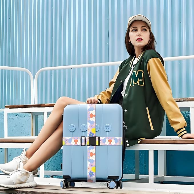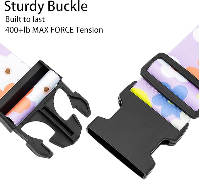 - Vibrant Design: These luggage straps feature a striking colored flowers pattern, adding a pop of color to your travel gear