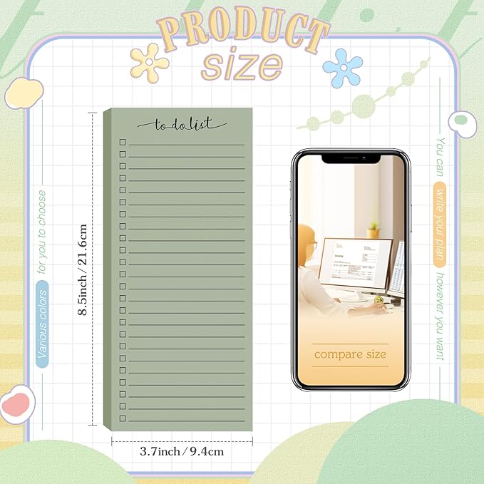 - To Do List Notepad: you will receive 10 pieces of notepad checklists, each notepad measures approx. 3.7 x 8.5 inches, and contains 50 tear off sheets per pieces, portable size and enough amount to meet your daily usage, you can also share with your classmates and colleagues; These tear off memo pads feature check boxes and ample space to fill in the date, itemized lines, and checkboxes to ensure your daily tasks are organized and easy to achieve