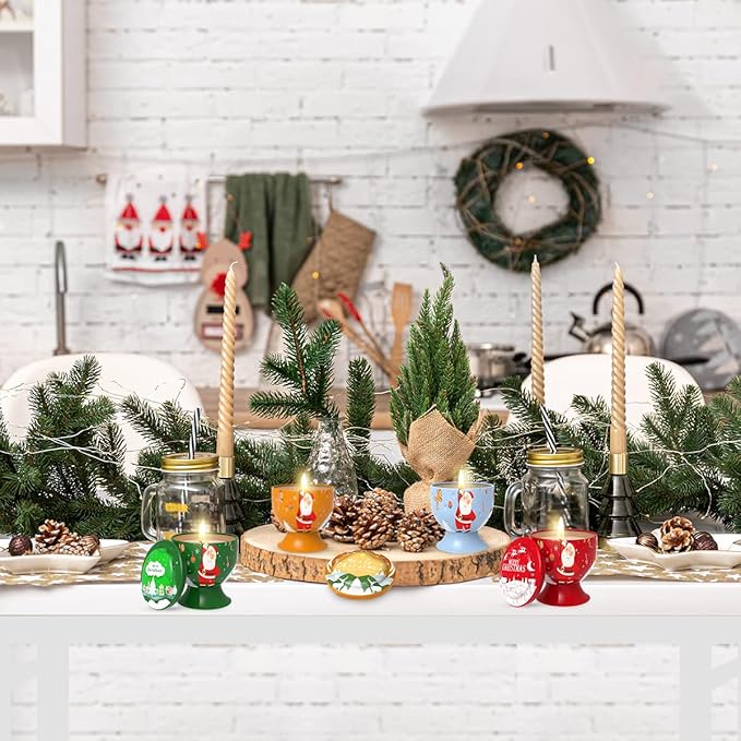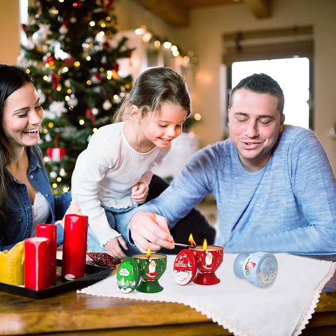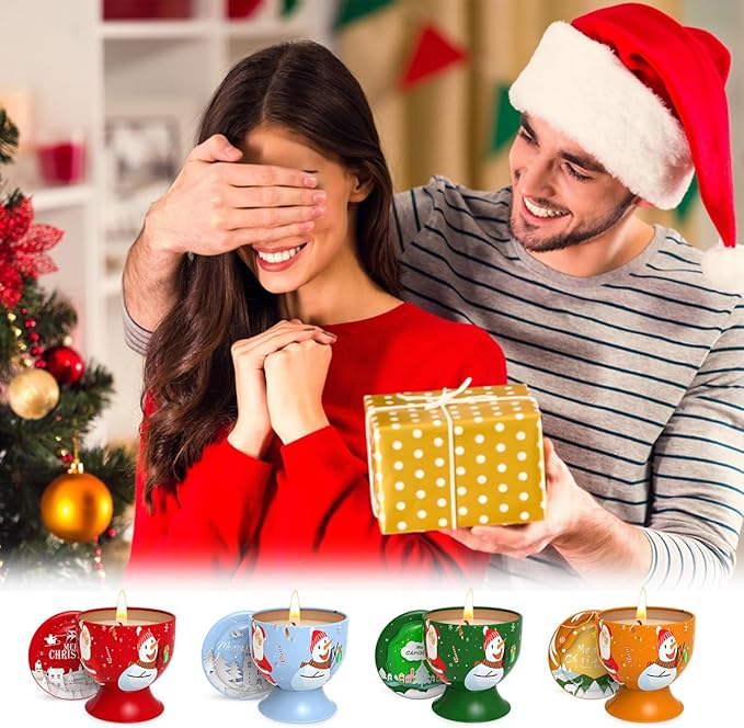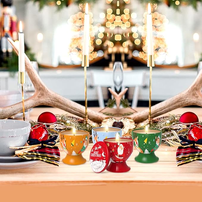- 4 Different Pleasant Scents: The whole christmas themed candles set includes 4 fragrances: lavender, vanilla&jasmine, cinnamon and cedar, which are well preserved in decorative metal tins for home christmas parties;