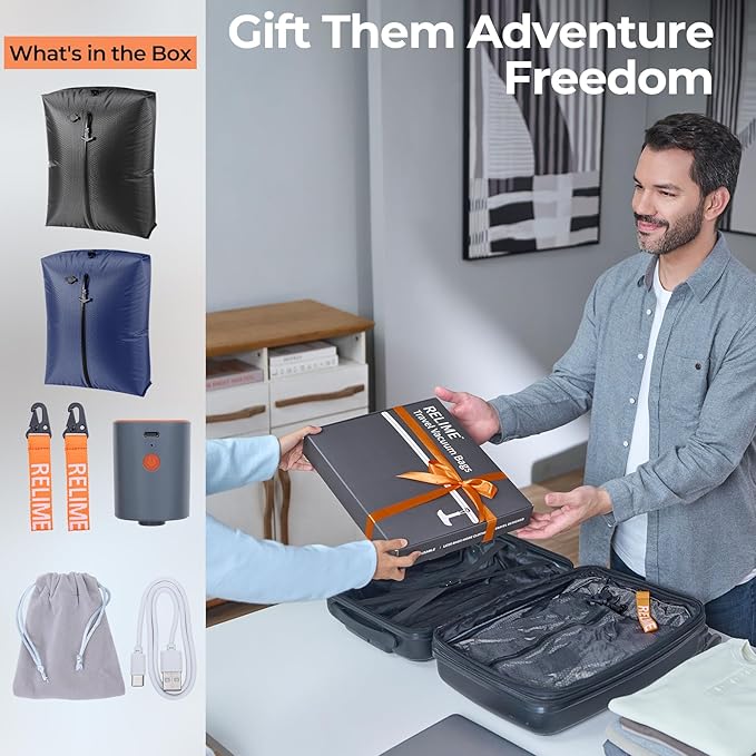 - 【Upgraded Vacuum Kit】Upgraded vacuum system ensure 5KPa suction (42% stronger vs. market 3.5KPa vacuum pump) slashes bulk by 50% at least. 2400mAh battery fuels 40 full compressions by one charge. Highly portable and convenient for travel storage. Double click power on prevent accidentally on in your luggage.