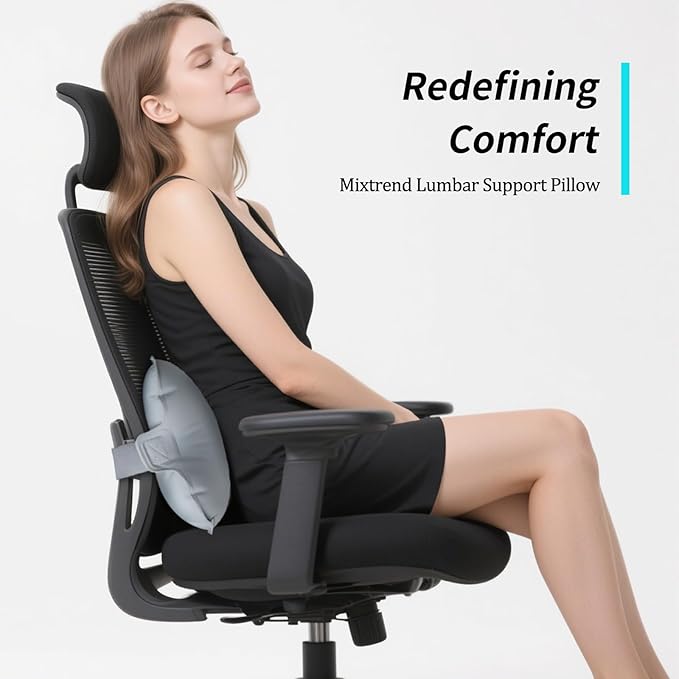 Mixtrend Travel Lumbar Pillow Inflatable Lumbar Support Pillow with Memory Foam, Back Support Pillow for Airplane Long Flight, Essential Travel Support Pillow for Women Men Kids