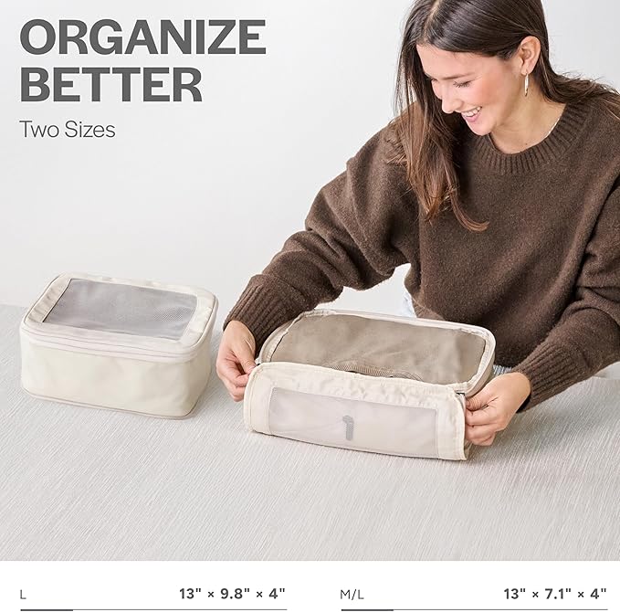 Compression Packing Cubes for Travel - Luggage Organizer Bags - Double Zipper Packing Cubes for Suitcases (2-Pack, Beige)