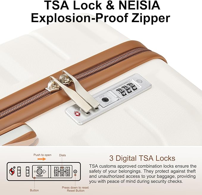 - Durable and Secure: Crafted from high-quality PC+ABS material, this lightweight yet sturdy hardshell luggage is built to last. Equipped with a TSA-approved lock, it keeps your belongings secure and provides peace of mind during your journey.