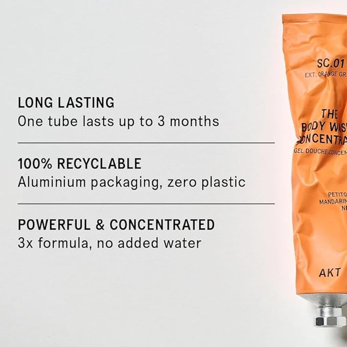 Akt The Body Wash Concentrate 3.4 Fl Oz, Natural Shower Gel with Skin-Balancing Prebiotics, Body Wash Women & Men, with Olive Squalane & Vitamin E, Sc.01 Orange Grove, All Genders