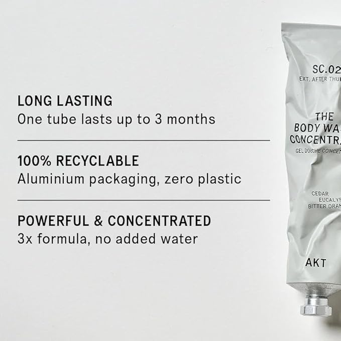 AKT The Body Wash Concentrate 3.4 Fl Oz, Natural Shower Gel with Skin-Balancing Prebiotics, Body Wash Women & Men, with Olive Squalane & Vitamin E, Sc.02 After Thunder, All Genders
