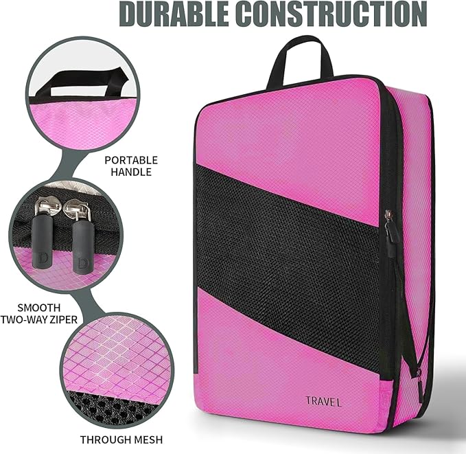 - Space Saving Cubes: use the compression zip, it can save up to 30%-50% of your luggage space.