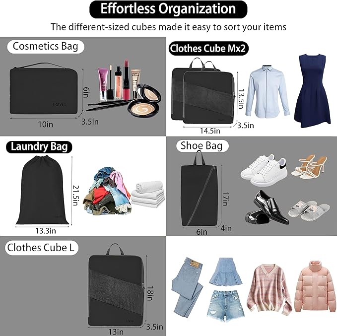 - Effortless Organization: The different-sized cubes made it easy to separate outfits, accessories, and swimwear etc. quickly grab what you needed without rummaging through your suitcase.