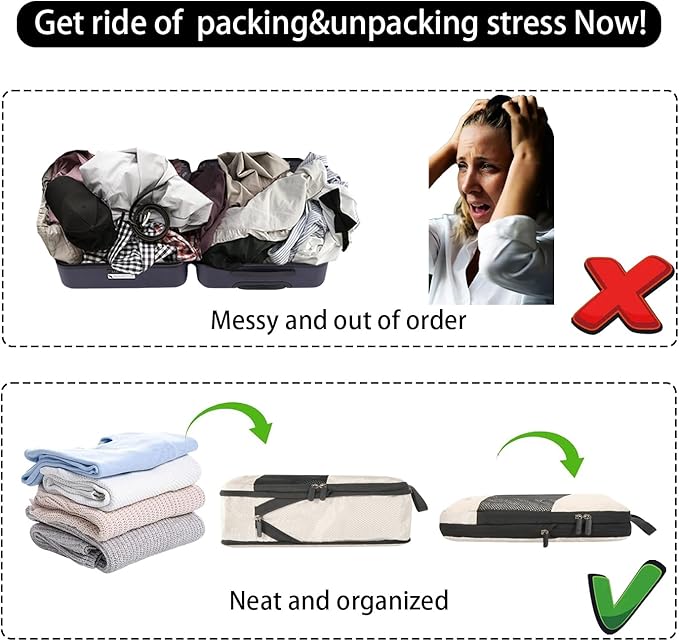 - Quick and Easy Dressing: The cubes kept everything neatly organized, making it a breeze to find the right outfit each day.with our see-through mesh packing cubes, every item is easy to identify and access, It saved so much time when getting ready!