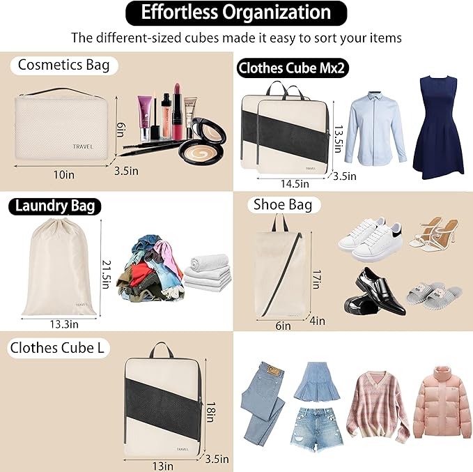 - Effortless Organization: The different-sized cubes made it easy to separate outfits, accessories, and swimwear etc. quickly grab what you needed without rummaging through your suitcase.