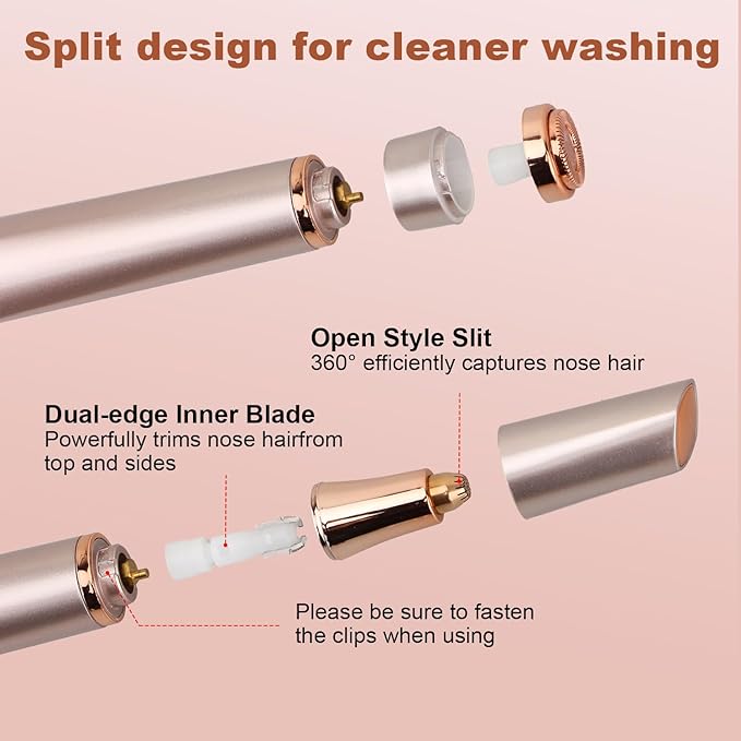 - 【Portable and Travel-Ready】 The nose hair trimmer for women ideal for on-the-go grooming, you can maintain your look whether at home or on vacation. Gently removes hair without pulling, ensuring a painless experience, Enjoy hassle-free hair removal and eyebrow shaping anytime, anywhere