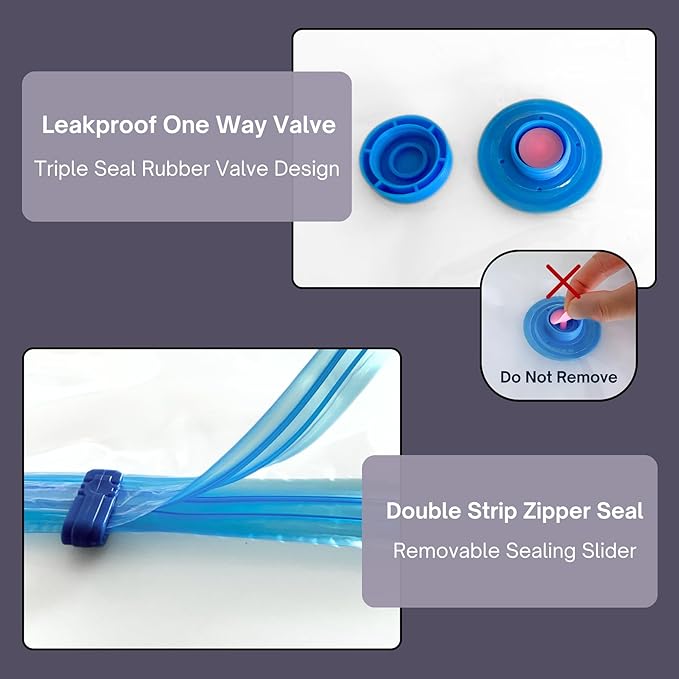 - Easy to Use: Simplicity is key with our vacuum bags. Just place your items inside, seal with the included reinforced zipper sliders, and pump out the air using either the provided hand pump or your household vacuum cleaner