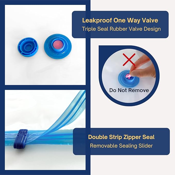 - Easy to Use: Simplicity is key with our vacuum bags. Just place your items inside, seal with the included reinforced zip sliders, and pump out the air using either the provided hand pump or your household vacuum cleaner