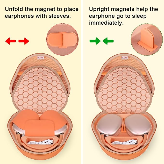 - Sleep Mood: This airpods max case has the magnetic device on the bottom, alllows your AirPods Max into sleep mode in ultra-low-power state, The Bluetooth can be automatically disconnected when you put your AirPods Max in this carrying case and connected immediately when you take AirPods Max out, convenient for daily use.
