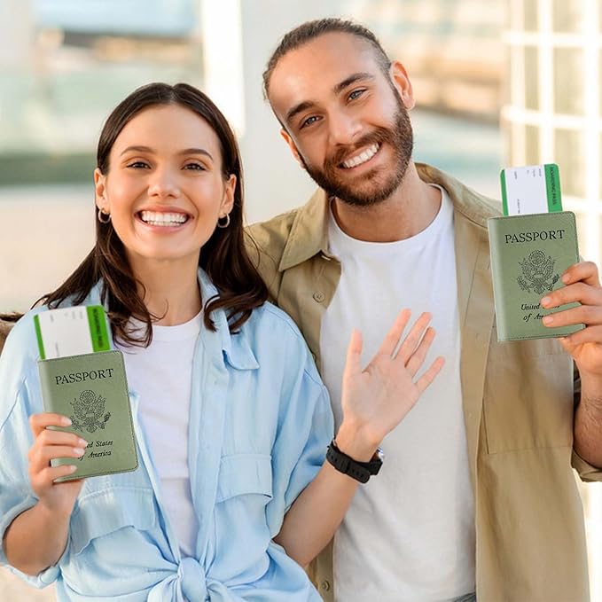 Cnycmy Passport Holder–Slim Travel Organizer for Passport, RFID Blocking,Boarding Pass, Credit Cards | Vegan Leather & Anti-Theft Design (Moss Green5)
