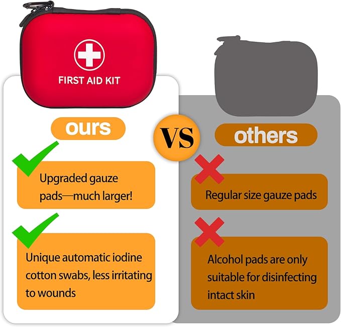 - 【Versatile First Aid Kit for Car and Outdoor Adventures】Designed as a reliable car first aid kit emergency kit, this compact med kit also doubles as a hiking first aid kit, ensuring you’re prepared for injuries during road trips, hikes, or outdoor activities.