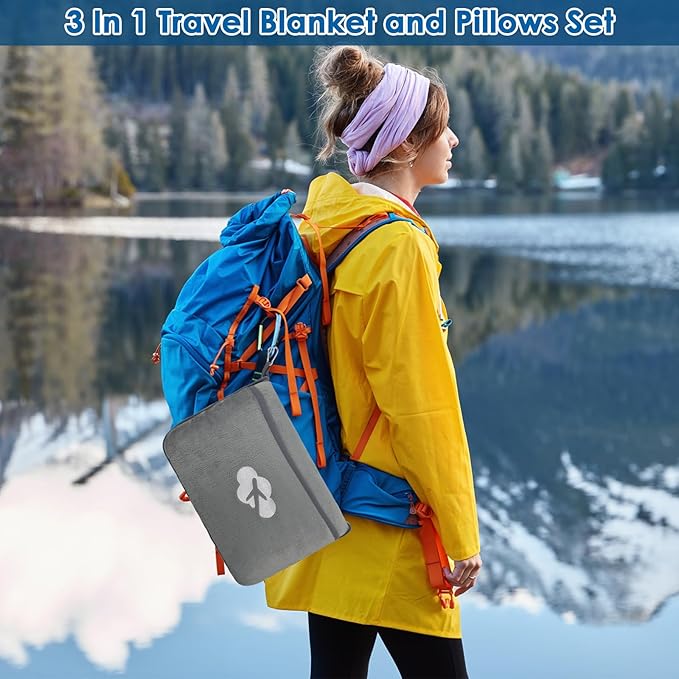 - 3 In 1 Travel Pillow and Blanket Set - The grey travel blanket and pillow set includes travel pillow with storage bag, travel blanket airplane compact with bag. This premium airplane travel essentials have everything for a relaxing and peaceful journey, ensuring you arrive at your destination refreshed and energized. It's a must-have for seasoned travelers everywhere as airplane travel essentials.