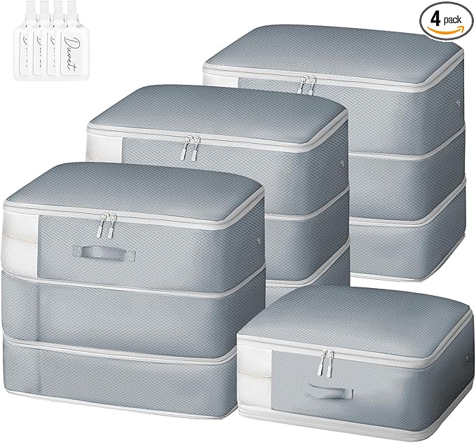 Comforter Storage Bag - Large Capacity Blanket Storage Bags 3-Layer Ultra Space Saving Self Compression Organizer, Washable Compression Bags for Storage Comforter Blanket, 4-Pack, Grey