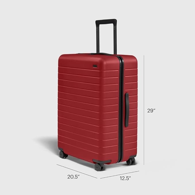 - Lightweight and durable design: Away’s Classic luggage is designed with a durable, water repellent, and lightweight 100% polycarbonate shell. Measuring 20.5"L x 12.5"W x 29"H (including wheels), this bag provides ample space for long trips.