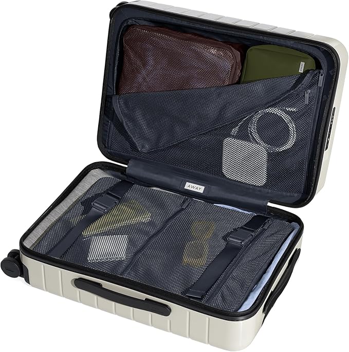 - Lightweight and durable design: Away’s Classic luggage is designed with a durable, water repellent, and lightweight 100% polycarbonate shell. Measuring 15.4"L x 9.6"W x 22.7"H, This carry-on provides ample and secured storage.