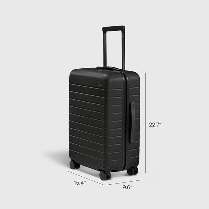 - Lightweight and durable design: Away’s Classic luggage is designed with a durable, water repellent, and lightweight 100% polycarbonate shell. Measuring 15.4"L x 9.6"W x 22.7"H, This carry-on provides ample and secured storage.