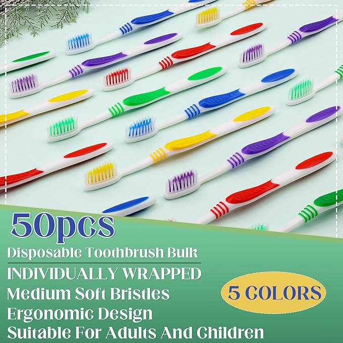- 50 Pcs Disposable Toothbrushes: Our 50 high-quality individually packaged large-capacity toothbrushes are ideal for your oral care. You don't need to buy frequently, you can meet long-term use needs with one purchase, truly achieve value for money, and easily have healthy white teeth and a fresh and confident smile