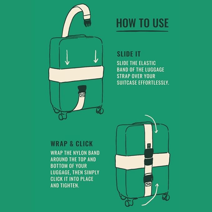 - Versatile: Designed to fit both carry-on and checked luggage, this adjustable strap secures your bags in place.