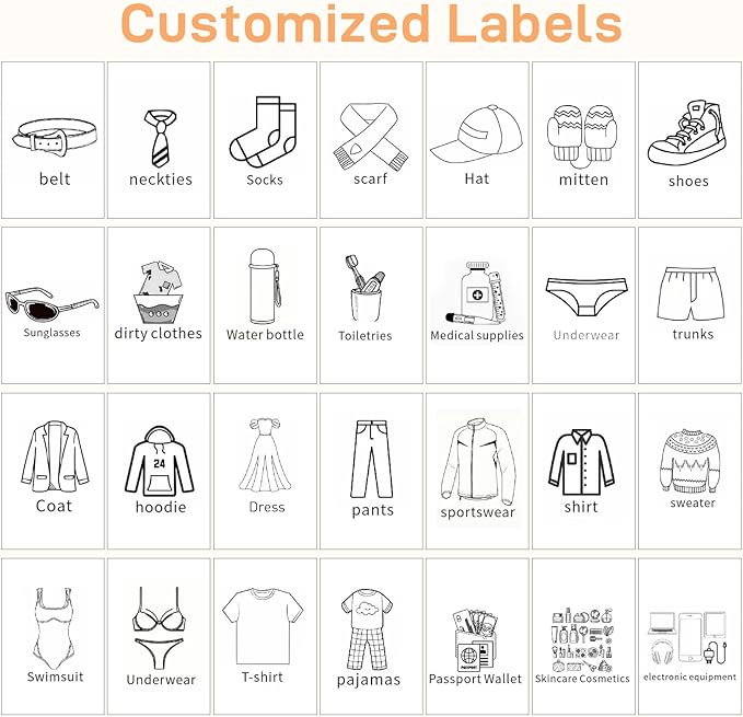 - Customizable Label Slot:Travel packing cube has an exterior slot for labels, making it easy to categorize items like clothes, shoes, toiletries, and more, so you can find what you need instantly