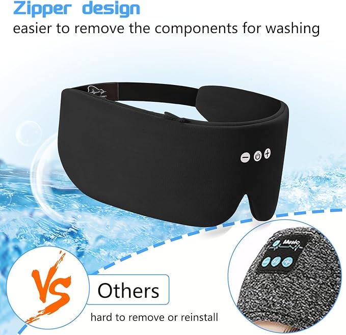 ALASKA BEAR Sleep Headphone Mask Bluetooth 5.2 HD Stereo Noise Reduction 3D Eye Mask for Sleeping Eye Contour Built-in Mask w/Thin Speakers Wireless Audio Sports Headgear(Black)