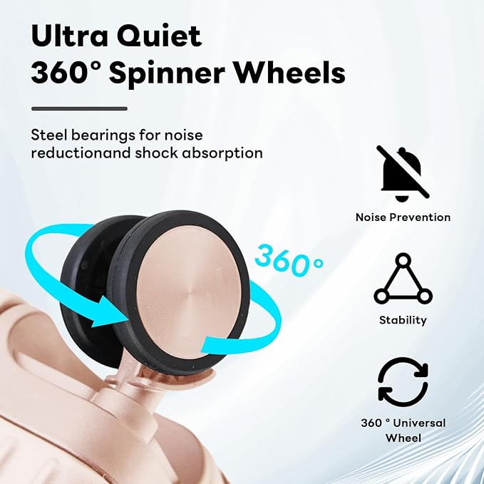 - 【TSA Lock & 360° Spinner Wheels】Glide through airports effortlessly with silent 360° spinner wheels. Navigate with minimal noise for a seamless journey. TSA approved locks can protect your valuable items and provide security for your journey