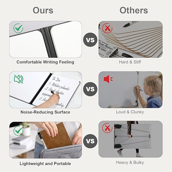 - 【Portable & Durable】The lightweight and compact design of portable white board means it fits neatly into bags or backpacks. Its sturdy construction ensures it will last a long time, so you can use it wherever inspiration strikes.