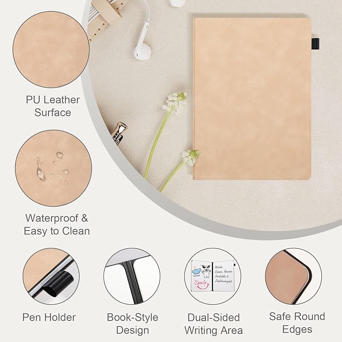 AGM Portable White Board Dry Erase Notebook, 12" x 9" Double Sided Folding Whiteboards with 3 Pens, Small Travel Dry Erase Board Skin-Friendly Material for Study, Meeting, Planning, Tuscan